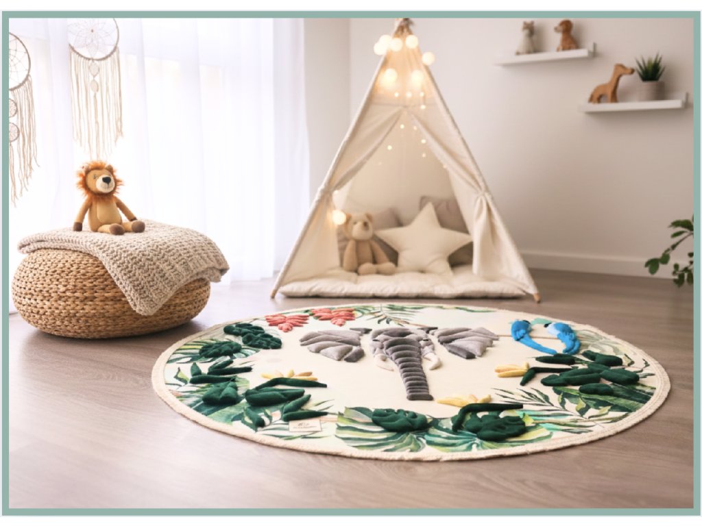 Pošli svoje deti na expedíciu do džungle. Bosými nohami kráčajú okolo slonov, každý krok prináša nové podnety a jemnú stimuláciu chodidiel. Nerovný povrch senzomotorickej podložky Sloník Teo aktivuje nervové zakončenia a prebúdza svaly nôh, členkov aj lýtok.